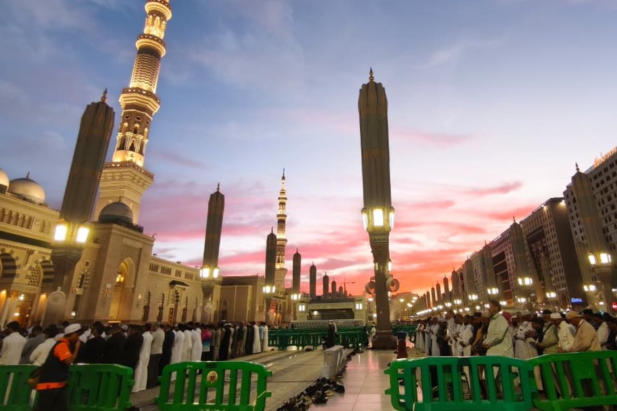 Di bawah langit Madinah yang memerah, panggilan salat menggema, membawa ketenangan yang sulit dilukiskan dengan kata-kata.
